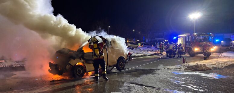 (jwu) BRACKEL – Am Freitagabend (20.02.2026) wurde die Freiwillige Feuerwehr Brackel zu einem brennenden Fahrzeug in die Thieshoper Straße alarmiert. Dank der Geistesgegenwart eines Abschleppfahrers konnte eine Ausbreitung des Feuers auf das Transportfahrzeug verhindert werden. Ein VW-Bus, der zuvor in einen Unfall auf der Autobahn verwickelt war, sollte durch ein Abschleppunternehmen