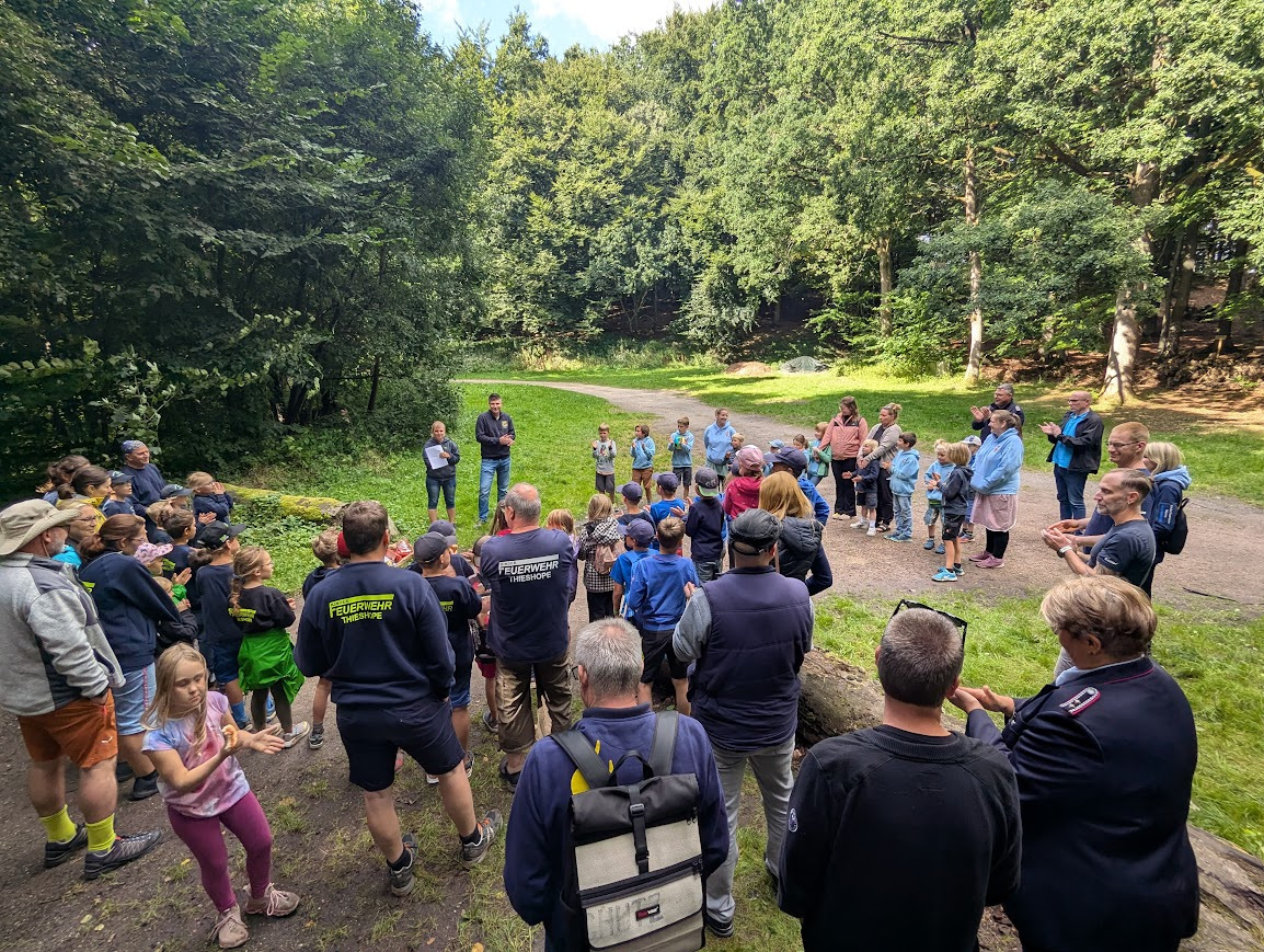 Organisiert von der Samtgemeinde-Kinderfeuerwehrwartin Svea Allert, bot die Veranstaltung bei herbstlichem Wetter eine Rallye mit spannenden Stationen und kniffligen Fragen rund um Natur und Allgemeinwissen. Die jungen Teilnehmer meisterten die Aufgaben mit viel Engagement – barfuß über Rindenmulch, Steine, Matsch und Wasserläufe.