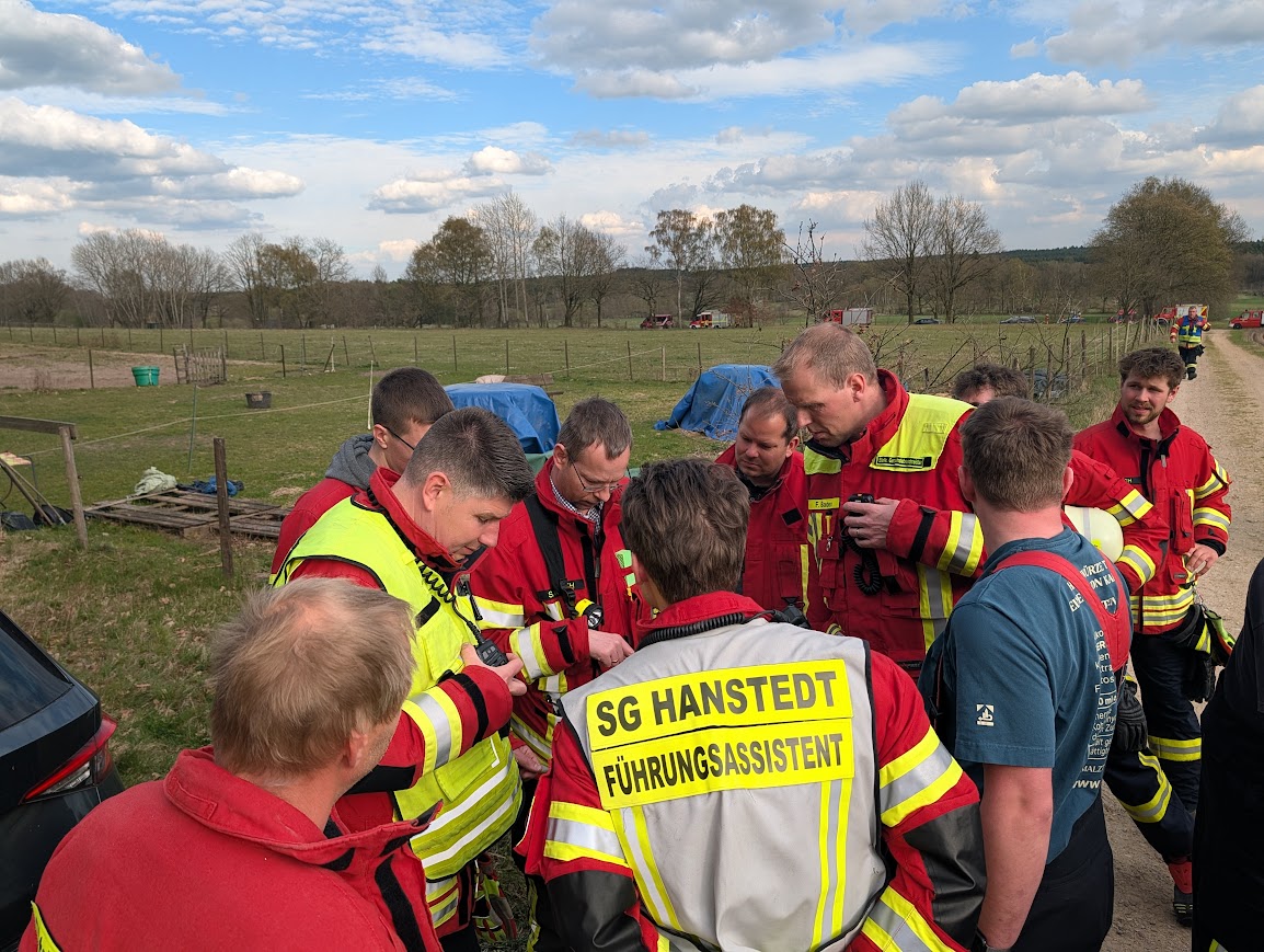 Um das Waldgebiet großflächig und zeitnah absuchen zu können, ließ Gemeindebrandmeister und Einsatzleiter Sebastian Seier umgehend personelle Verstärkung anfordern. Nach der Erstalarmierung wurden zusätzlich die Feuerwehren aus den folgenden Ortschaften nachgefordert: Dierkshausen, Hanstedt, Wesel und Asendorf