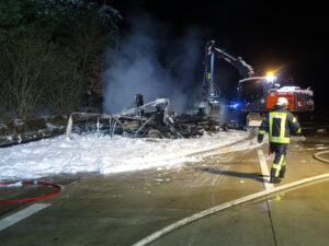 Für die rund 78 Einsatzkräfte endete der Einsatz nach etwa 2,5 Stunden. Verletzt wurde niemand. Zur Brandursache und zur Schadenshöhe kann die Feuerwehr keine Angaben machen, dies ermittelt die Autobahnpolizei aus dem Heidekreis.