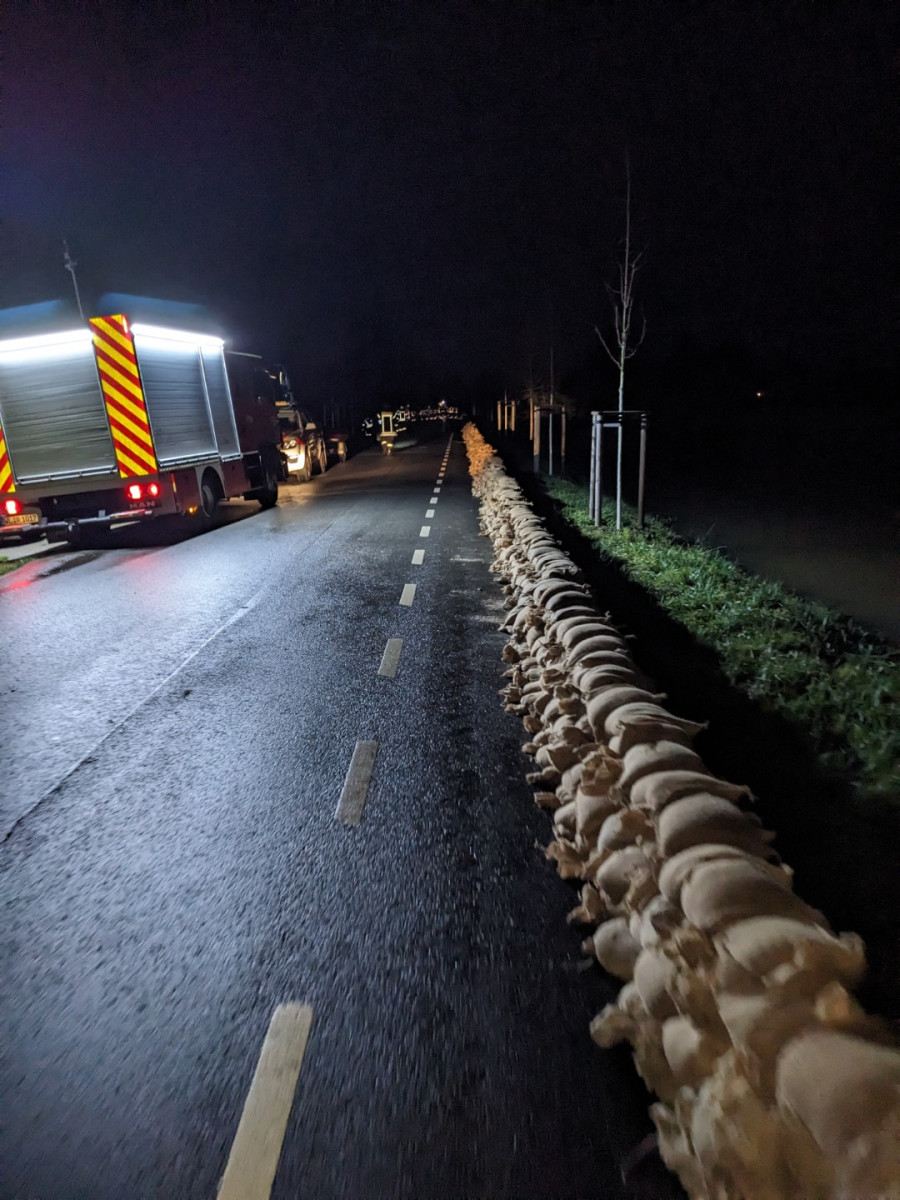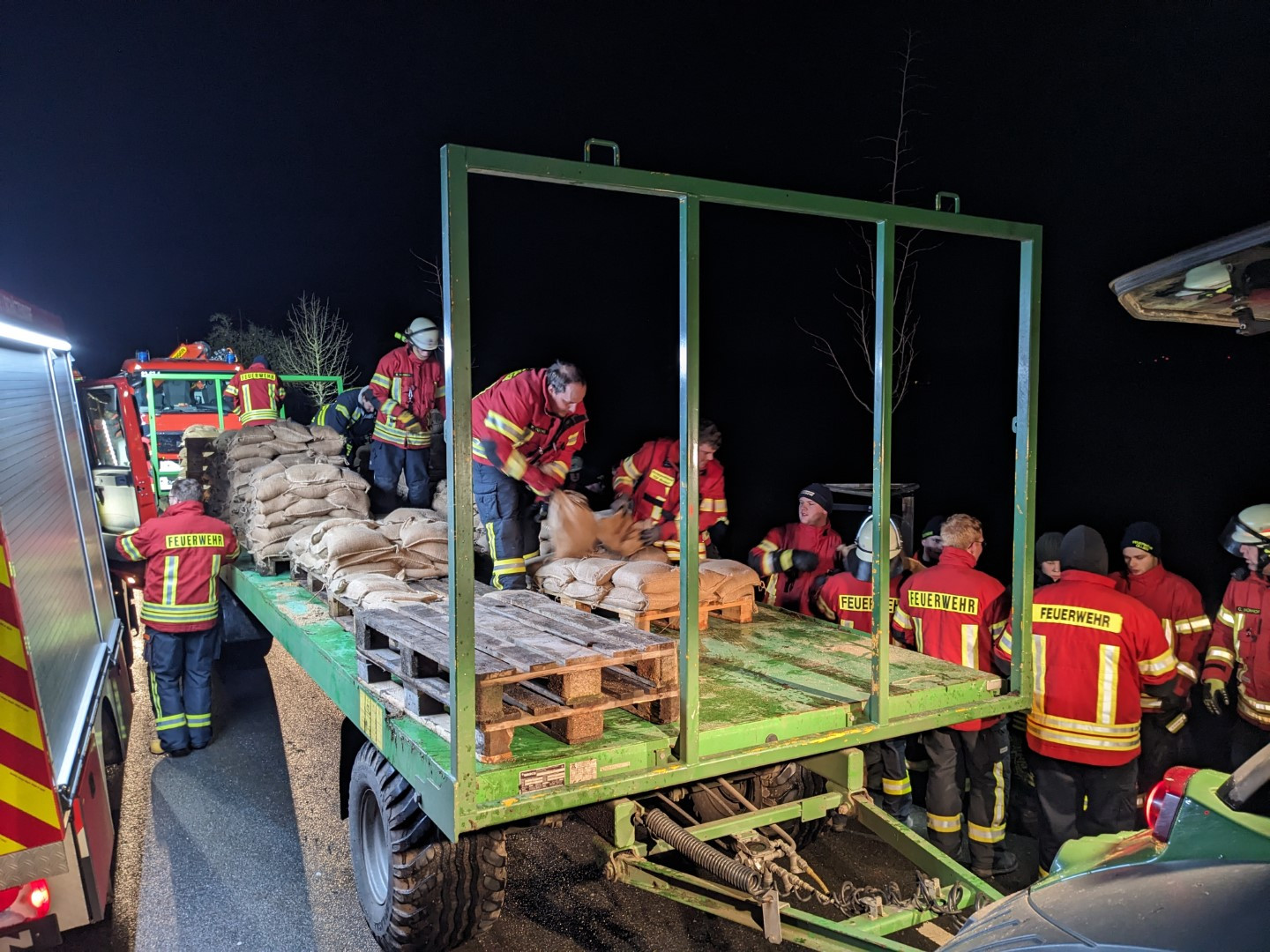 Der nächste Einsatzort für die Kräfte lag auf der Landstraße 191 zwischen Ahlden und Büchten. Sollte das Wasser, dass bereits bis an die Straße vorgedrungen war, diese überwinden, würden große Teile der Ortschaft überflutet werden. Unter Leitung des Stellvertretenden Zugführers Jörn Petersen wurden die mit Traktorgespannen und Lkws von der Füllstation angelieferten Sandsäcke zu einem über 500 Meter langen und einen halben Meter hohen Sandsackwall entlang der Straße aufgeschichtet. Zudem wurden an zwei Wohnhäusern am Ortsrand sämtliche Kellerfenster und -zugänge mit Sandsäcken gegen das noch weiter ansteigende Wasser geschützt. Insgesamt wurden an diesem Einsatzabschnitt über 20.000 Sandsäcke verbaut. Während der seit über acht Stunden im Einsatz befindliche Fachzug „Personalreserve/Deichverteidigung 1“ aus dem Einsatz herausgelöst wurde und die Heimfahrt antrat, erfolgte um Mitternacht der Alarm für den Fachzug „Personalreserve/Deichverteidigung 2“ bestehend aus Feuerwehren der Gemeinden Jesteburg und Seevetal und den Städten Buchholz i.d.N. und Winsen. Die Buchholzer Kräfte nahmen die Arbeit an der Füllstation wieder auf, da der Vorrat an Sandsäcken inzwischen zur Neige ging, während der Rest des Zuges den Sandsackwall entlang der L191 noch weiter verlängerte. Ein weiterer Auftrag war die Errichtung eines Sandsackwalls entlang einer Straße in Richtung des Ahldener Schlosses, wo das Wasser ebenfalls bereits die Wohnbebauung bedrohte. Der Einsatz des Fachzuges ist bis gegen acht Uhr am Donnerstagmorgen geplant, wenn örtliche Kräfte die Arbeiten wieder übernehmen können.