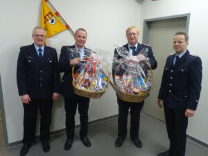 Zum Abschluss der Versammlung erhielten Jens Gieschen und Frederik Wölper für ihre langjährige Tätigkeit in ihrer Funktion einen Präsentkorb von der Wehr als Dank ausgehändigt.
