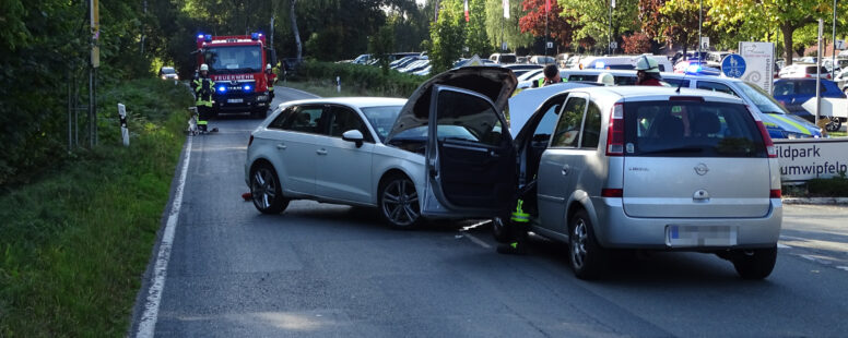 -Zwei Personen wurden verletzt.- (jma) Nindorf. An der Einfahrt zum Wildpark „Lüneburger Heide“ auf der L 216 sind ein Audi und ein Opel am Sonntagnachmittag zusammengeprallt. Die alarmierte Feuerwehr Nindorf sicherte die Unfallstelle ab und stellte den Brandschutz sicher. Zusätzlich betreute sie, bis zum Eintreffen des Rettungsdienstes, die Verunfallten. Nach Abschluss